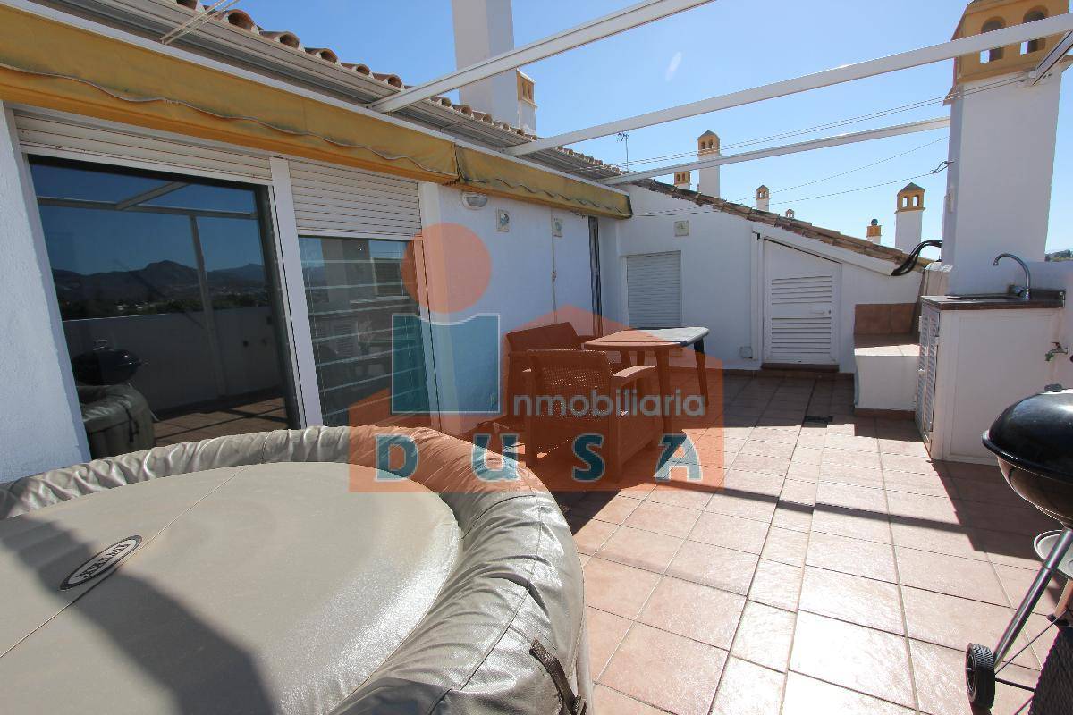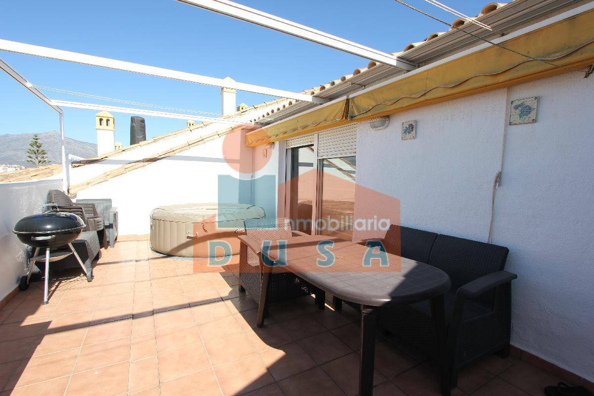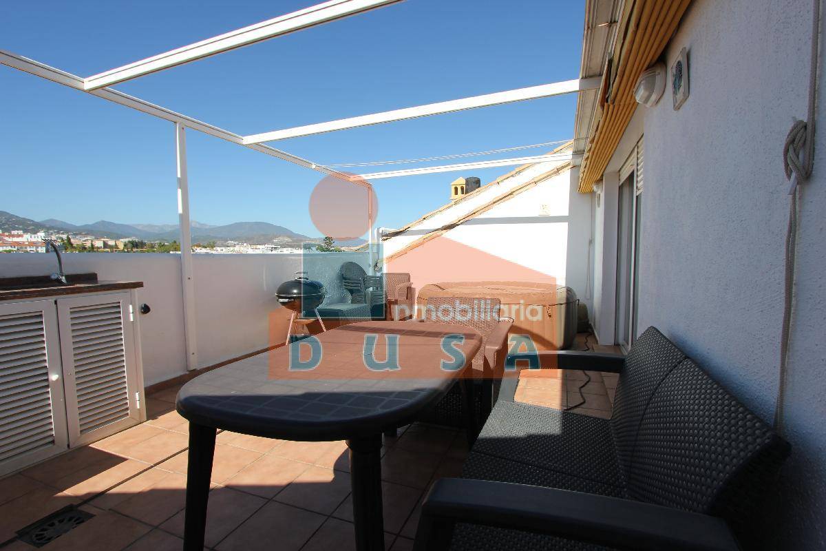 Ref: 10272. Inmobiliaria DUSA ofrece este espectacular Ático Dúplex . Se entra en un amplio recibidor , a continuación el gran salón comedor con cocina abierta, lo que le da mucha amplitud y salida a una terraza. En la misma planta encontramos 2 habitaciones y 1 baño para compartir. En la planta superior , se encuentra la habitación principal con baño en suite y vestidor y otra estancia que actualmente se usa como despacho pero que seria el cuarto dormitorio. En esa planta, encontramos una segunda terraza de 30 M2 con jacuzzi , barbacoa , un espacio ideal para disfrutar. Visítalo sin compromiso.